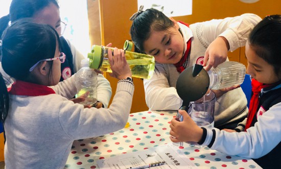 上海市和田路小學(xué)學(xué)生進(jìn)行生活小調(diào)查探究學(xué)習(xí)。上海市和田路小學(xué)供圖