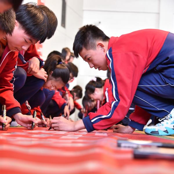 最后,全體師生、家長代表在條幅上簽字留名,讓誓言落在實處,讓夢想不再遙遠。