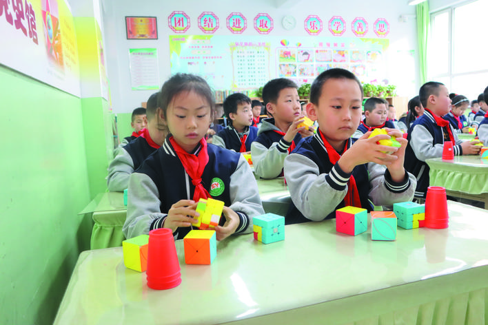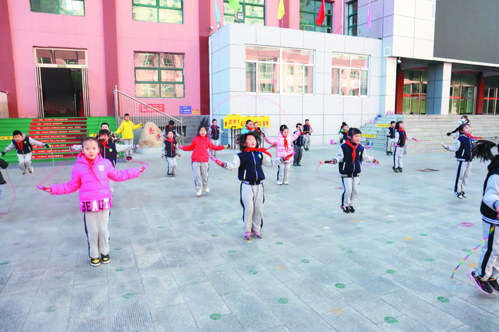 冬日暖陽(yáng)下,忻州市實(shí)驗(yàn)小學(xué)校園里一派生機(jī)勃勃的景象。武術(shù)訓(xùn)練場(chǎng)上,孩子們正在認(rèn)真扎馬步、練拳術(shù),一招一式打得虎虎生威,眼睛里閃爍著堅(jiān)毅和自信的光芒。百人腰鼓隊(duì)排著整齊的隊(duì)伍,伴著音樂(lè)的節(jié)奏不停變換著步伐,鼓槌上的紅綢子上下舞動(dòng),看得人眼花繚亂?;ㄊ交@球挑戰(zhàn)籃球極限,展示籃球技術(shù)和表演的完美結(jié)合。花樣跳繩中,孩子們?cè)诃h(huán)擺的繩索中做著各種跳躍動(dòng)作……操場(chǎng)上,熱火朝天,教學(xué)樓里,每一間教室里都散發(fā)著濃濃的趣味性?!耙黄惨晦啵瑫?shū)寫(xiě)堂堂正正中國(guó)字”“編程要注意邏輯關(guān)系”“三原色是哪些顏色呢?”……這是市實(shí)驗(yàn)小學(xué)每周三開(kāi)展的第二課堂綜合實(shí)踐活動(dòng),也是孩子們最興奮最高興的校園時(shí)光。