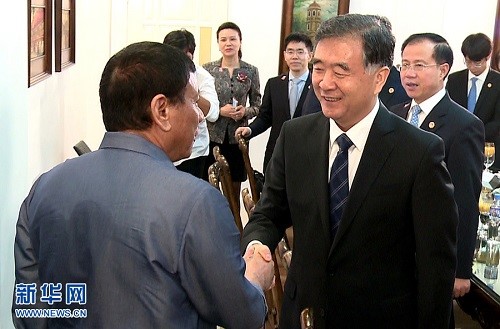 3月17日,菲律賓總統(tǒng)杜特爾特在達(dá)沃市會(huì)見在菲律賓進(jìn)行正式訪問的中國(guó)國(guó)務(wù)院副總理汪洋。