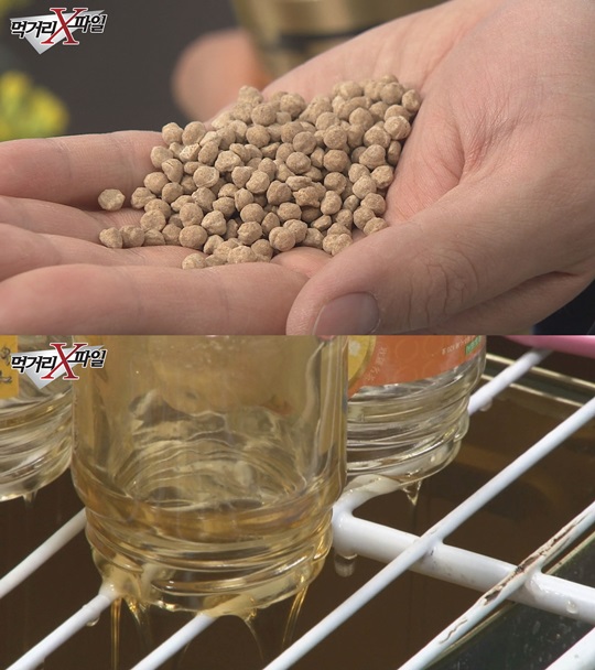 濟(jì)州島不法商家高價(jià)銷(xiāo)售給中國(guó)游客等外國(guó)游客的假冒偽劣馬骨丸(上圖)和油菜花蜜(下圖)/CHANNEL A《食物X檔案》畫(huà)面截圖