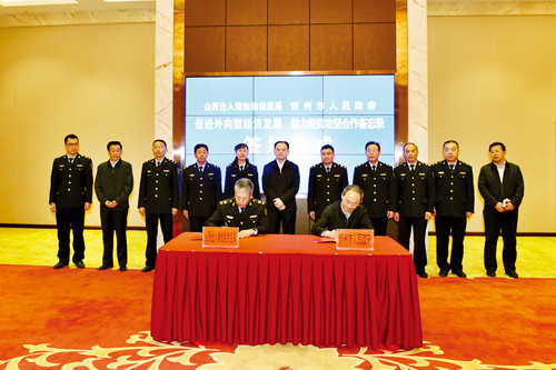 為進(jìn)一步貫徹落實(shí)省委省政府《關(guān)于全面擴(kuò)大開放的意見》,市政府和山西出入境檢驗(yàn)檢疫局本著“合作、服務(wù)、促進(jìn)、發(fā)展”的原則,經(jīng)認(rèn)真協(xié)商,就發(fā)揮各自職能優(yōu)勢(shì),促進(jìn)農(nóng)產(chǎn)品擴(kuò)大出口、創(chuàng)建法蘭出口質(zhì)量安全示范區(qū)以及支持五臺(tái)山機(jī)場(chǎng)航空口岸臨時(shí)對(duì)外開放等方面達(dá)成共識(shí),建立合作機(jī)制,促進(jìn)我市對(duì)外開放和外向型經(jīng)濟(jì)發(fā)展,助力脫貧攻堅(jiān)。具體合作事項(xiàng)包括:一、促進(jìn)農(nóng)產(chǎn)品擴(kuò)大出口。確定重點(diǎn)幫扶產(chǎn)業(yè),創(chuàng)建出口食品農(nóng)產(chǎn)品質(zhì)量安全示范區(qū),培育出口企業(yè),打造知名品牌,拓展國(guó)際市場(chǎng)。二、助推出口工業(yè)品質(zhì)量提升。推動(dòng)質(zhì)量品牌提升,推進(jìn)工業(yè)產(chǎn)品“三同”工程,加強(qiáng)國(guó)外技術(shù)性貿(mào)易措施應(yīng)對(duì),強(qiáng)化公共檢測(cè)技術(shù)服務(wù)。三、支持五臺(tái)山機(jī)場(chǎng)航空口岸臨時(shí)對(duì)外開放。全力支持五臺(tái)山機(jī)場(chǎng)對(duì)外開放口岸平臺(tái)建設(shè),科學(xué)規(guī)劃和建設(shè)五臺(tái)山機(jī)場(chǎng)口岸檢驗(yàn)檢疫技術(shù)查驗(yàn)設(shè)施,做好口岸核心能力建設(shè)和動(dòng)植物檢疫規(guī)范化建設(shè)各項(xiàng)工作,防范國(guó)外人類傳染病和動(dòng)植物疫情疫病傳入,保障國(guó)門生物安全。