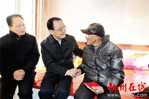 在看望1926年出生、1948年入黨的忻府區(qū)西張鄉(xiāng)東張村老黨員張根明時,李俊明說,老黨員曾為革命、建設(shè)和改革事業(yè)貢獻過青春、奉獻過力量,是黨和國家的寶貴財富,黨和人民不會忘記你們,市委始終牽掛著你們。全市各級一定要特別關(guān)注,千方百計地幫助老同志解決實際困難和問題,讓老同志時刻感受到黨和政府的關(guān)心與關(guān)懷。黨員退伍軍人李貴明在部隊期間戰(zhàn)績顯著,曾榮立二等功一次、兩次受到嘉獎。1996年下崗后,李貴明自費學(xué)習(xí)廚藝謀出路,從未向政府提任何要求。李俊明了解其參軍復(fù)員及家庭子女情況后,對他在各種情況下都能充分發(fā)揮共產(chǎn)黨員的先鋒模范作用表示贊賞。要求政府部門全力服務(wù)好退伍軍人,勉勵李貴明在政府的幫助下繼續(xù)奮斗,不忘初心,發(fā)揚革命傳統(tǒng),在新時代三大攻堅戰(zhàn)中再立新功。在慰問六級殘疾軍人張玉根、建檔立卡貧困戶李成緒和特困職工左衛(wèi)忠時,李俊明將米面油、對聯(lián)等慰問品送到他們家中,送上黨和政府的親切關(guān)懷和新春祝福。他仔細了解他們的家庭困難原因和就業(yè)收入情況,勉勵他們堅定信心,在黨委、政府以及社會各界的幫助下,努力克服困難,樂觀面對生活,過上幸福生活。他要求全市各級各部門一定要高度關(guān)注民生,關(guān)心困難群眾的生產(chǎn)生活狀況,及時幫助解決困難,讓他們充分感受到黨和政府及社會主義大家庭的關(guān)愛。