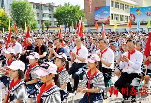 6月1日上午,李俊明來到忻州市七一路小學(xué)。寓教歌舞書畫,寄情德智體美,七一路小學(xué)先后被評為“全國語言文字規(guī)范化示范校”、“ 國家級規(guī)范漢字書寫教育特色學(xué)?!?、“國家級語言教改實(shí)驗(yàn)?!?、“國家級美術(shù)教育先進(jìn)學(xué)?!?。李俊明仔細(xì)察看學(xué)生書法作品,翻閱教師教案和學(xué)生作業(yè),了解學(xué)科教學(xué)創(chuàng)新舉措。響應(yīng)學(xué)校號召,李俊明在“手接手心連心,共創(chuàng)文明城市”倡議書上簽名助陣,與小學(xué)生們一起將心愿卡貼上心愿樹,同參加慶?;顒拥膶W(xué)生家長們親切交談,了解孩子們的學(xué)習(xí)情況。學(xué)校以“ 新時(shí)代,新夢想,新召喚”為主題慶?!傲弧保羁∶飨瞪霞t領(lǐng)巾,與小朋友們一起觀看文藝展演節(jié)目。