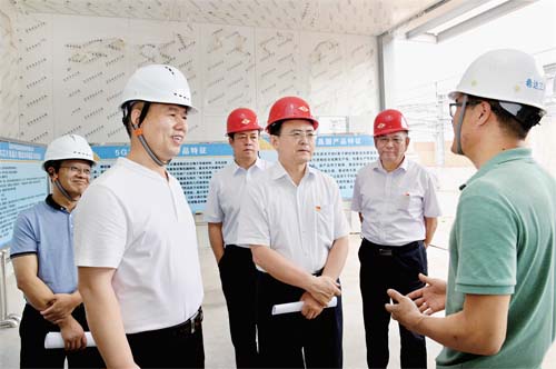 圖為省人大常委會(huì)副主任、市委書記李俊明在忻州經(jīng)濟(jì)開發(fā)區(qū)調(diào)研藍(lán)寶石晶體及晶片制造加工項(xiàng)目建設(shè)情況。本報(bào)記者 劉紀(jì)森 攝