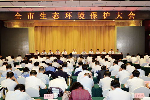圖為全市生態(tài)環(huán)境保護(hù)大會會場。本報記者 范濤 攝