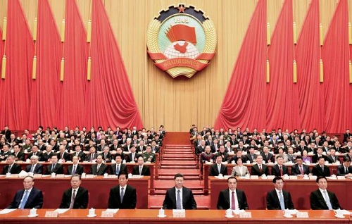 3月13日,中國人民政治協(xié)商會議第十三屆全國委員會第二次會議在北京閉幕。這是習(xí)近平、李克強(qiáng)、栗戰(zhàn)書、王滬寧、趙樂際、韓正、王岐山等在主席臺就座。新華社記者 黃敬文 攝