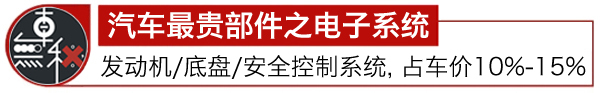 這個與汽車的檔次有關(guān),小型車電子系統(tǒng)較為簡單,價格也更低些,占整輛車價格的10%左右,而豪華車型的電子系統(tǒng)先進(jìn)而又復(fù)雜,平均占據(jù)整輛車15%的價格。