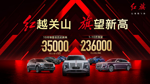 每一分對極致產(chǎn)品付出的努力,都將贏得客戶最珍貴的選擇和信任。10月,紅旗H9終端銷售量突破4000臺,緊跟一線豪華品牌同級車型,繼續(xù)擴(kuò)大國產(chǎn)品牌豪華轎車銷量領(lǐng)先優(yōu)勢;紅旗E-HS9以終端銷售量突破810臺的成績,創(chuàng)下單車型月銷量紀(jì)錄;紅旗“雙9”成為增強(qiáng)客戶產(chǎn)品體驗、帶動新紅旗產(chǎn)品矩陣向上突破的強(qiáng)大“引擎”。