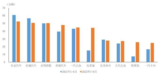 中汽協(xié):1-8月銷量排名前十的SUV生產(chǎn)企業(yè)共銷售395.2萬輛