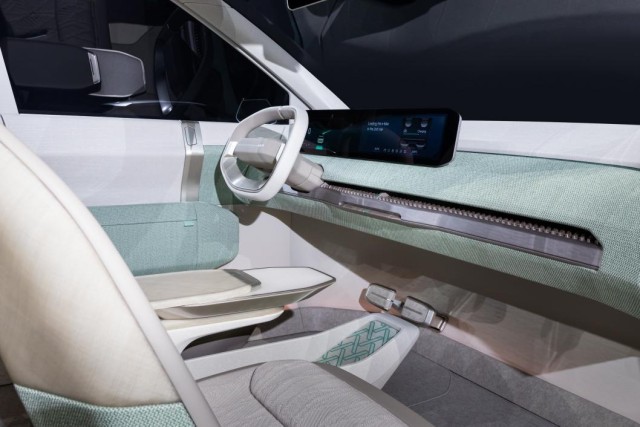 內(nèi)飾方面,起亞EV3概念車(chē)內(nèi)飾采用了簡(jiǎn)約的設(shè)計(jì)風(fēng)格,可以看到,該車(chē)內(nèi)飾并沒(méi)有配備多功能按鍵,雙輻式的方向盤(pán)搭配大尺寸連屏,以及懸浮式的座椅,更顯未來(lái)感。此外,在內(nèi)飾用料上,該車(chē)內(nèi)飾采用了大面積的織物包裹,座椅采用環(huán)保材料,座椅設(shè)計(jì)符合人體工程學(xué)原理。