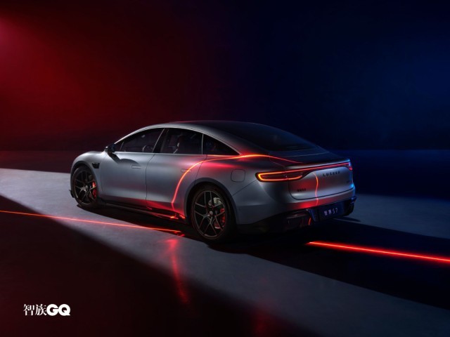 新車側(cè)面造型較為飽滿、流暢,略微向下傾斜的車頂線條搭配隱藏式車門把手和車窗邊框處的鍍鉻飾條進(jìn)行點(diǎn)綴時(shí)尚感較強(qiáng)。此外,智界S7還配備五輻式熏黑輪圈和紅色涂裝的高性能剎車卡鉗。車尾部分,修長(zhǎng)的貫穿式LED尾燈組點(diǎn)亮后辨識(shí)度較強(qiáng),鴨尾式擾流板與寬大的亮黑色后包圍組件則增強(qiáng)了車尾的視覺(jué)層次感。