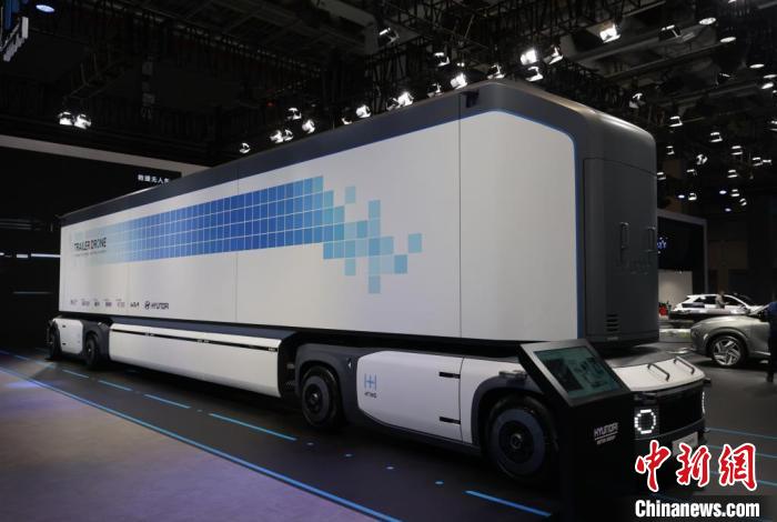 11月5日,第四屆中國國際進口博覽會在國家會展中心(上海)舉行。汽車展區(qū)吸引眾多企業(yè)前來參展。圖為現(xiàn)代汽車展區(qū)展示新能源技術產(chǎn)品——氫動智能無人運輸車。中新社記者 楊可佳 攝