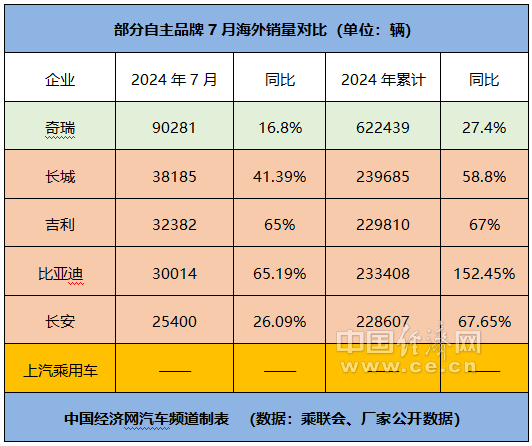數(shù)據(jù)顯示,7月,長(zhǎng)城、吉利、比亞迪和長(zhǎng)安的海外銷(xiāo)量分別為38185輛、32382輛、30014輛、25400輛,同比分別增長(zhǎng)41.39%、65%、65.19%、26.09%;前7個(gè)月的累計(jì)銷(xiāo)量分別為239685輛、229810輛、233408輛、228607輛,同比分別增長(zhǎng)58.8%、67%、152.45%、67.65%。(中國(guó)經(jīng)濟(jì)網(wǎng)記者 王躍躍)