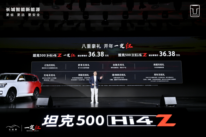 央廣網(wǎng)北京1月2日消息(記者 姜鵬)2025年1月1日,坦克500 Hi4-Z在保定·長(zhǎng)城汽車(chē)技術(shù)中心上市,售價(jià)36.38萬(wàn)元,坦克500 Hi4-Z一定紅同步發(fā)售。