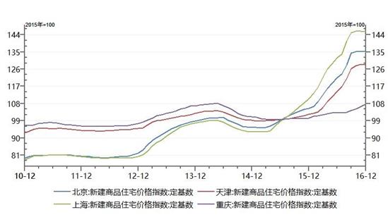重慶近兩年的房?jī)r(jià)漲幅明顯低于另外3個(gè)直轄市。數(shù)據(jù)來(lái)源:Wind資訊