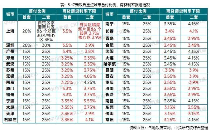 “近期各地政策的步調(diào)非常一致,充分落實‘517’降首付降利率的政策導向,充分體現(xiàn)房貸政策雙降是近期各地‘一城一策’的重要特點。”易居研究院研究總監(jiān)嚴躍進認為,各地政策的思路和邏輯非常清晰,近期普遍會出臺首付比例調(diào)至15%、房貸利率自由定價、三套房給予最優(yōu)信貸支持等政策,全國購房首付比例普遍進入“15%時代”。