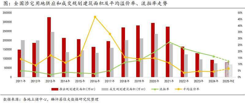 剛剛過去的2024年,全國土地市場供需兩端延續(xù)縮量態(tài)勢,溢價率低位徘徊,流拍率雖有下降但仍處于較高位。據(jù)機(jī)構(gòu)統(tǒng)計,2024年全國住宅用地成交規(guī)模降幅超兩成,土地出讓金僅為2020年高點四成左右。聚焦高能級城市拿地投資,成為眾多房地產(chǎn)企業(yè)的共識。
