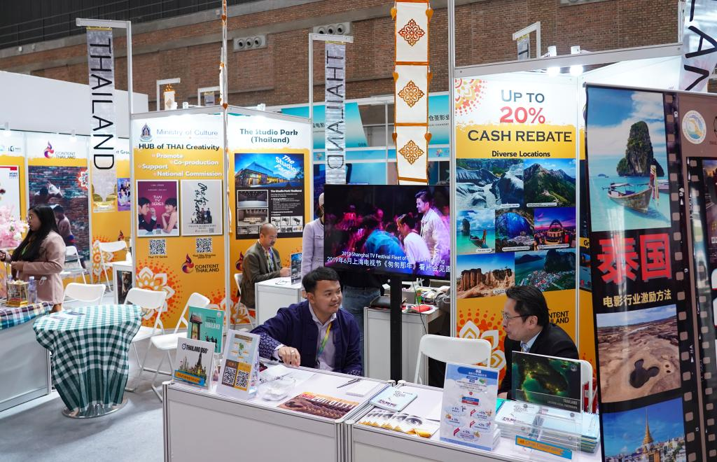 展會(huì)現(xiàn)場(chǎng),裝點(diǎn)著傳統(tǒng)泰式紋樣掛幅的泰國(guó)主題展位格外顯眼,吸引不少參展人員駐足?!拔覀兪窃颇系碾娪肮?,想了解一下電影合作政策?!甭?tīng)到中國(guó)電影公司的合作意向,泰國(guó)電影辦公室工作人員介紹起了泰國(guó)對(duì)電影行業(yè)的相關(guān)激勵(lì)政策,吸引外國(guó)制作團(tuán)隊(duì)赴泰拍攝。
