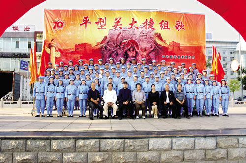 《平型關(guān)大捷組歌》演職人員合影,前排右二為崔樹(shù)珍。