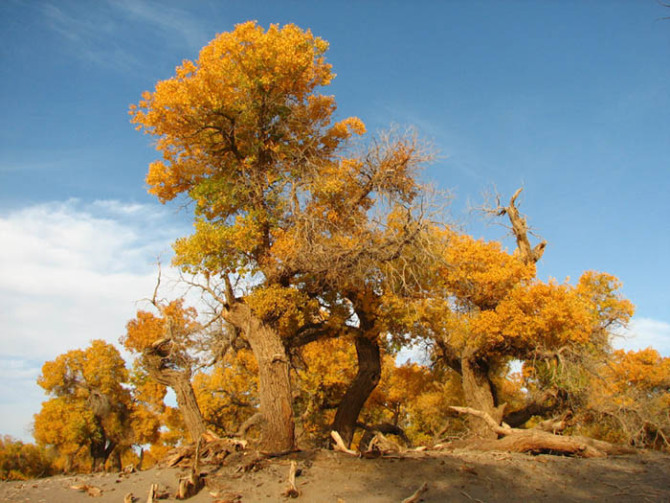 巴州旅游局局長馬彥成說, 由于胡揚(yáng)具有驚人的抗干旱、御風(fēng)沙、耐鹽堿的能力,能頑強(qiáng)地生存繁衍于沙漠之中,因而也被人們贊譽(yù)為“沙漠英雄樹”。巴州輪臺縣羅布人村寨、羅布湖、及若羌縣的阿拉干沿途景色都非常迷人,希望游客到此賞游,將會領(lǐng)略到不一樣的美麗風(fēng)光。