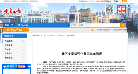 3月20日,北京市西城區(qū)人民政府網(wǎng)站發(fā)布消息,稱已約談ofo、摩拜,將控制西城區(qū)的共享單車數(shù)量。