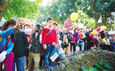 近日,在??邶埲A區(qū)新坡鎮(zhèn)斌騰村,游客排隊(duì)觀看特色表演,現(xiàn)場(chǎng)井然有序。