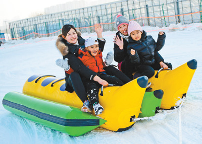 1月1日,河北廊坊市民在安次區(qū)壹佰公園的“冰雪嘉年華”活動(dòng)中乘坐雪地香蕉船。元旦假期,當(dāng)?shù)氐摹氨┘文耆A”活動(dòng)吸引了廣大市民參與游玩,慶祝新年到來(lái)。冰滑梯、雪地香蕉船、雪地足球等多個(gè)項(xiàng)目讓市民盡情享受冰雪運(yùn)動(dòng)的樂(lè)趣。新華社記者 王 曉攝
