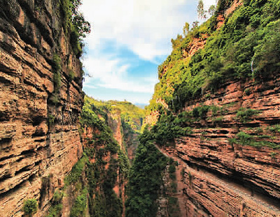 這道綿延22公里的大裂谷景觀,寬處約200米,最窄處僅6米。兩側(cè)有四川省大涼山和烏蒙山兩大山脈。沿江多為懸崖絕壁、懸河飛瀑。不管是塌陷還是撕裂,總有一番天崩地裂的驚人之舉。可以想象那是一種怎樣神奇的力量把大山撕開,造就成如此壯美的景觀。最奇的是谷中時有霧氣升騰,據(jù)說是因雨水下過,天氣轉(zhuǎn)熱時霧氣自然蒸騰所致。少的時候,如輕煙繚繚,瞬間即逝;多時,如霧嵐纏繞,久久不散。