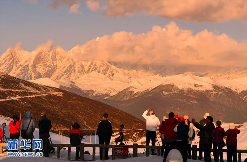 眾多攝影愛好者靜待南迦巴瓦峰露真容(4月2日攝)。春日,常年云霧繚繞的南迦巴瓦峰時(shí)而露出真容,吸引大批游客駐足拍攝。西藏林芝市的南迦巴瓦峰地處橫斷山脈、喜馬拉雅山脈和念青唐古拉山脈的交匯處,其巨大的三角形峰體終年積雪,云霧繚繞,從不輕易露出真面目,所以它也被稱為“羞女峰”。新華社記者 張汝鋒 攝