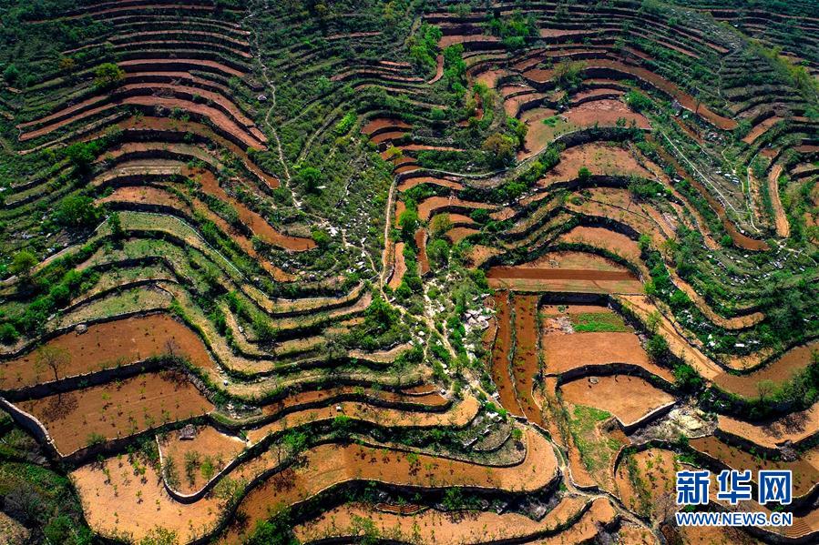 新華社照片,石家莊,2018年5月6日 冀南梯田美如畫 這是5月6日無(wú)人機(jī)拍攝的涉縣關(guān)防鄉(xiāng)后池村梯田。初夏時(shí)節(jié),河北省邯鄲市涉縣山間的梯田綠意盎然,猶如一幅幅美麗畫卷。 新華社記者 王曉 攝