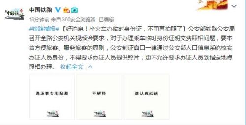 好消息!坐火車辦臨時身份證,不用再拍照了