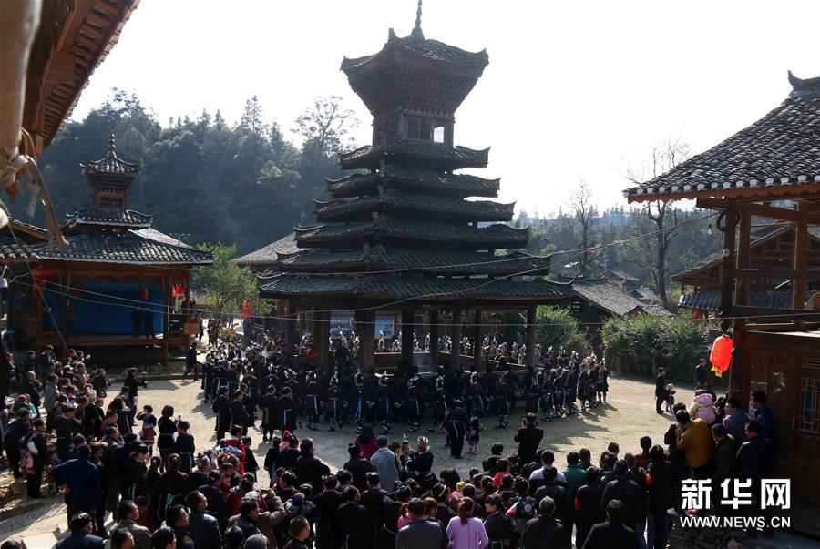 2月17日,貴州省黔東南苗族侗族自治州黎平縣巖洞鎮(zhèn)述洞村開(kāi)展一年一度的“鼓樓之宗”活動(dòng)。侗族老人在當(dāng)?shù)刈罟爬系墓臉恰冀ㄓ诿鞔莫?dú)柱鼓樓講述侗族遷徙歷程,告誡大家要敬老尊賢、和睦相處、團(tuán)結(jié)友善,侗族青年男女身著節(jié)日盛裝圍著鼓樓一邊踩歌堂,一邊唱遷徙古歌,之后在鼓樓旁進(jìn)行“侗族大歌”對(duì)唱,感懷族群遷徙的歷史,傳承傳統(tǒng)文化。新華社發(fā)(楊代富 攝)