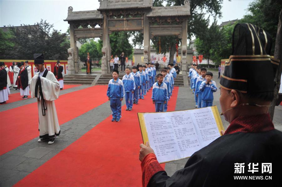 5月7日,山西運城新絳縣在當?shù)厍旯懦墙{州的文廟首次舉行釋菜禮大典,以弘揚傳承尊師古文明,吸引了城鄉(xiāng)眾多群眾和中小學生冒雨觀典。新華社發(fā)(高新生 攝)