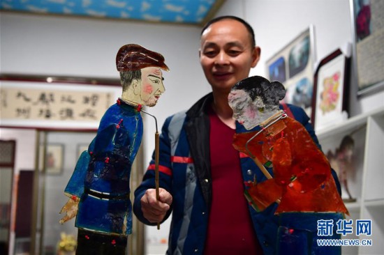 11月27日,在河南省信陽市羅山縣彭新鎮(zhèn)曾店村,羅山皮影戲傳承人陳雨倫在羅山皮影社會傳承交流基地給游客表演皮影戲。據(jù)《羅山縣志》記載,羅山皮影源自河北灤州,從明嘉靖年間開始在河南省信陽市羅山縣傳承,距今已有四百余年歷史。羅山皮影的皮影人是用牛皮制作,工序復(fù)雜,制作精美,生、旦、凈、丑行當(dāng)齊全。2008年,羅山皮影戲入選第一批國家級非物質(zhì)文化遺產(chǎn)擴(kuò)展項目名錄。 新華社記者馮大鵬攝
