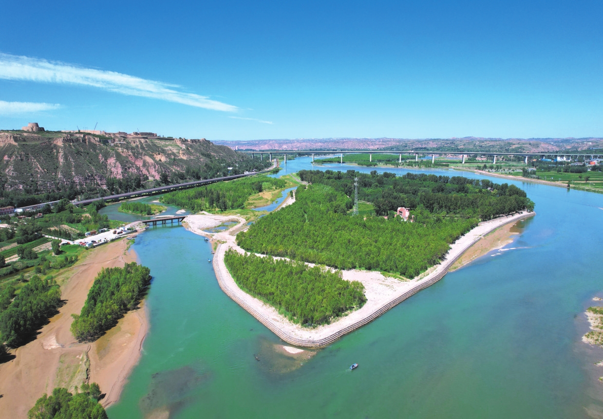 “一灘藏漢史,千年有回聲?!背跻娔锬餅灰娝拿姝h(huán)水,如一粒翡翠鑲嵌于濁流之中。人說這里是塞上少有的綠洲,站在灘上,可聞晉、陜、蒙三省的雞鳴。面積僅0.16平方公里,卻承載著兩千多年的傳奇。