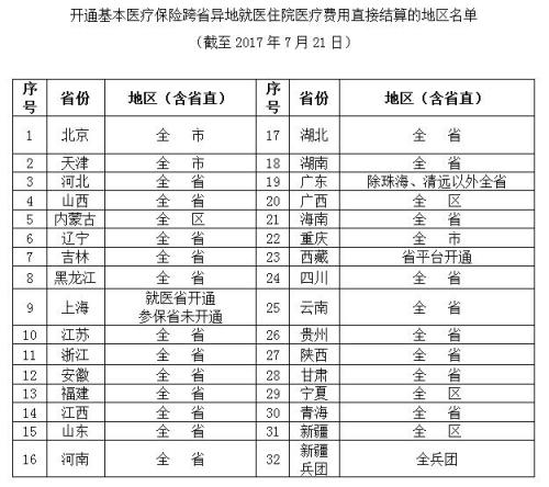 據(jù)人力資源和社會保障部網(wǎng)站消息,目前全國跨省異地就醫(yī)住院醫(yī)療費用直接結(jié)算聯(lián)網(wǎng)接入工作順利推進(jìn)。截至7月21日,全國31省份和新疆生產(chǎn)建設(shè)兵團(tuán)均接入國家異地就醫(yī)結(jié)算系統(tǒng),開通390個地區(qū),占97.5%。截至7月19日,開通4055家跨省異地就醫(yī)住院醫(yī)療費用直接結(jié)算定點醫(yī)療機(jī)構(gòu)。