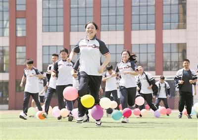 高三學(xué)生參加趣味減壓游戲。 新華社發(fā) 許傳寶攝
