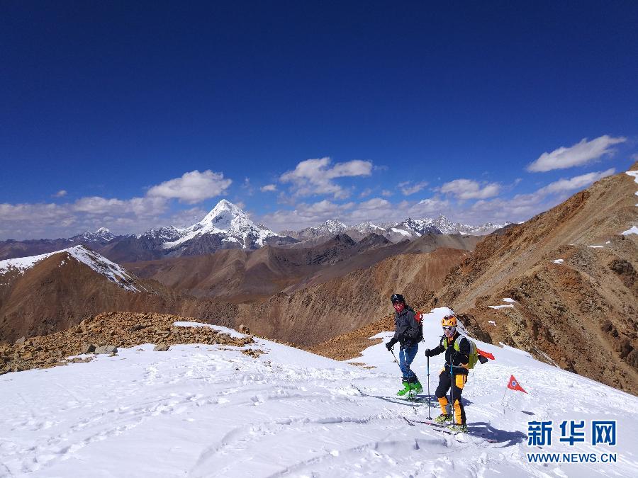 ↑記者第一次見(jiàn)到劉百靈是在第十六屆西藏登山大會(huì)滑雪登山項(xiàng)目的營(yíng)地——洛堆峰雪線處,海拔5600米。劉百靈膚色黑得發(fā)亮,與身邊長(zhǎng)年從事高山訓(xùn)練的藏族教練無(wú)異。但細(xì)問(wèn)起來(lái),他說(shuō)自己生在湖南,現(xiàn)居杭州,是地道的南方人。 因?yàn)閷?duì)戶外運(yùn)動(dòng)尤其是對(duì)滑雪的執(zhí)著,劉百靈的膚色變了,過(guò)起了旁人眼中的另一種人生,也成了“異類”。但他卻感謝自己成了“異類”。這是10月4日,滑雪愛(ài)好者、“體育旅游”探索者劉百靈(左)在位于西藏自治區(qū)當(dāng)雄縣羊八井鎮(zhèn)的洛堆峰雪坡上練習(xí),此處海拔約5700米。遠(yuǎn)處的山峰是海拔7048米的窮母崗日峰。 新華社發(fā)