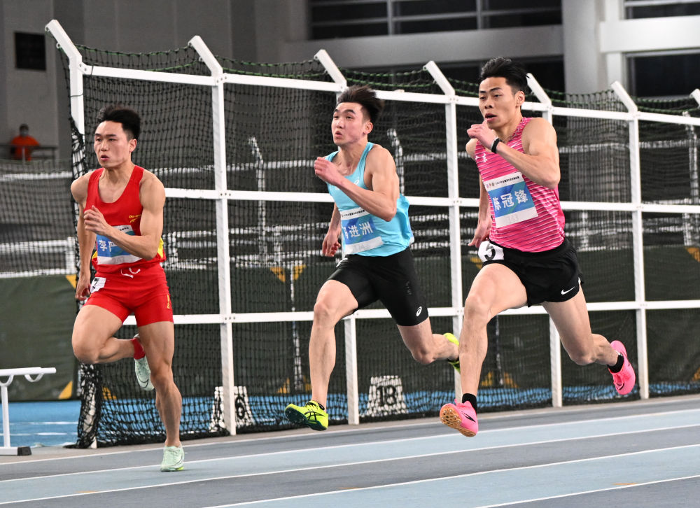 陳冠鋒和湯星強是男子4X100米接力項目國家隊隊友,此番在室內(nèi)60米決賽同場較量,廣東隊陳冠鋒起跑出色、沖刺有力,最終率先沖過終點,以6秒55的個人最好成績奪冠。福建隊湯星強狀態(tài)欠佳,成績?yōu)?秒70,名列第五。