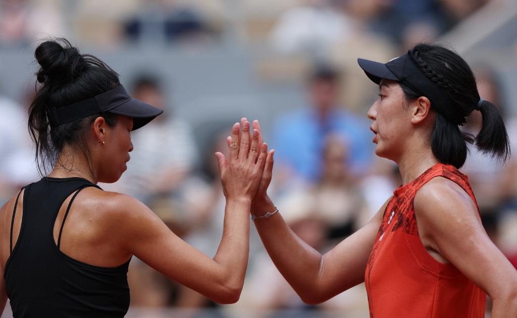 6月11日,王欣瑜(右)/謝淑薇在決賽中。新華社記者高靜攝
