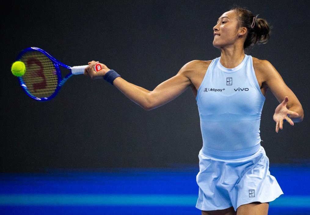 這是9月27日拍攝的鄭欽文對(duì)陣阿朗戈比賽現(xiàn)場(chǎng)。新華社記者 白雪飛 攝