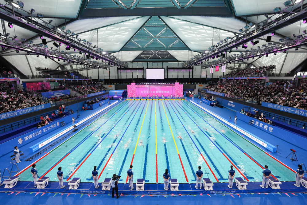11月10日,參賽選手在女子400米自由泳預(yù)賽中。當(dāng)日,第十五屆全國(guó)運(yùn)動(dòng)會(huì)游泳項(xiàng)目在深圳拉開(kāi)帷幕。新華社記者 夏一方 攝