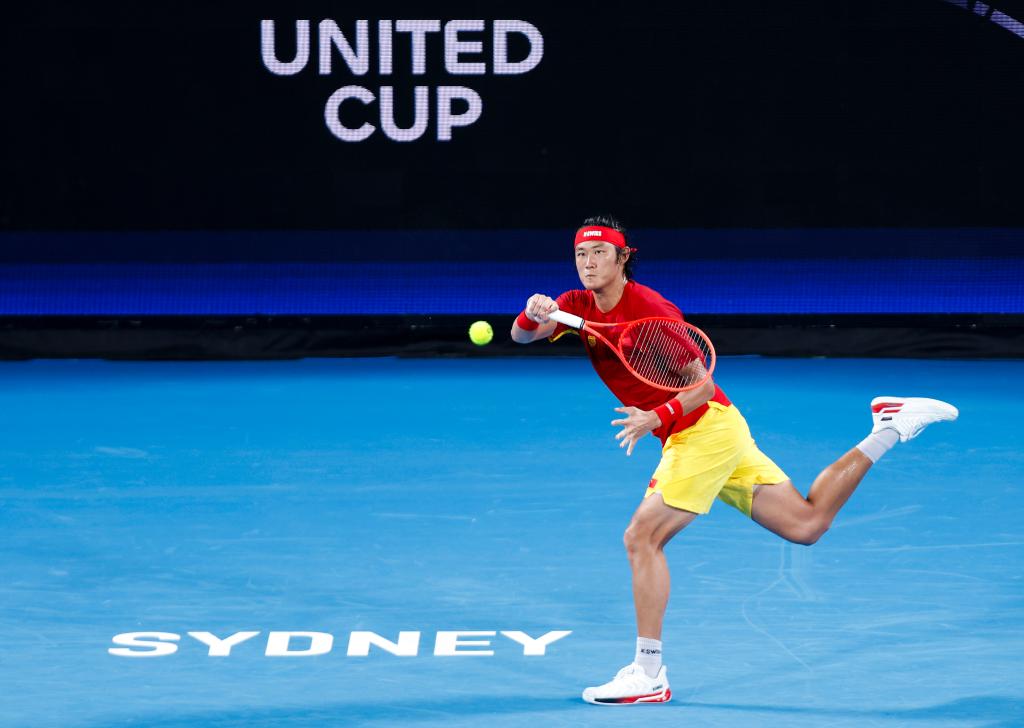 1月4日,中國隊選手張之臻在男子單打比賽中回球。新華社記者 馬平 攝