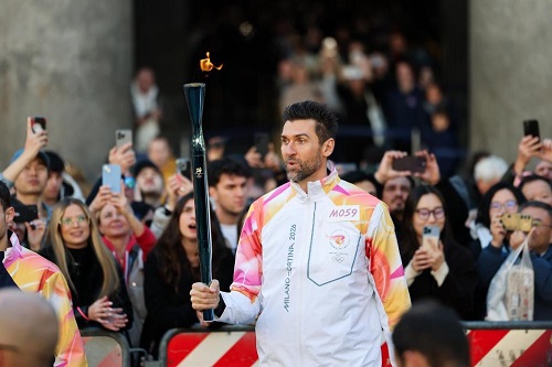 2025年12月6日,在意大利羅馬萬神殿,火炬手、意大利籃球運(yùn)動(dòng)員安德烈亞·巴爾尼亞尼在傳遞火炬。當(dāng)日,2026年米蘭-科爾蒂納冬奧會(huì)火炬在意大利羅馬傳遞。新華社記者李京攝