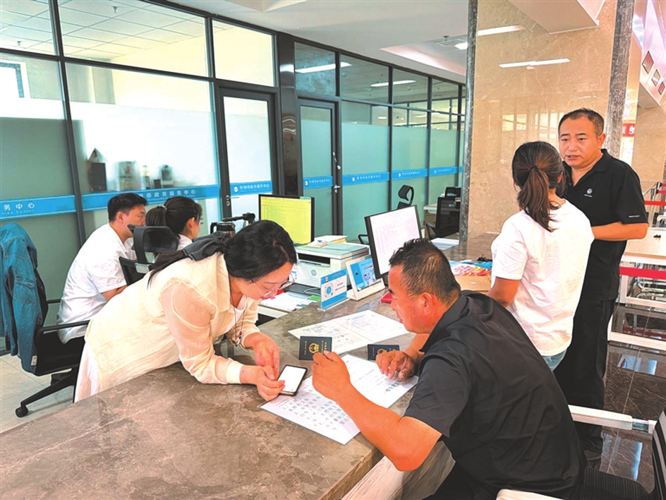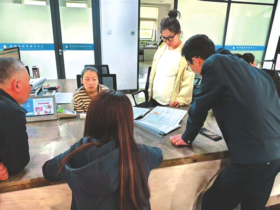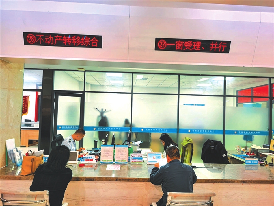 市政務大廳一樓不動產(chǎn)轉移綜合窗口,實現(xiàn)稅務+不動產(chǎn)登記一窗受理、并行辦理,日均辦理400件以上。
