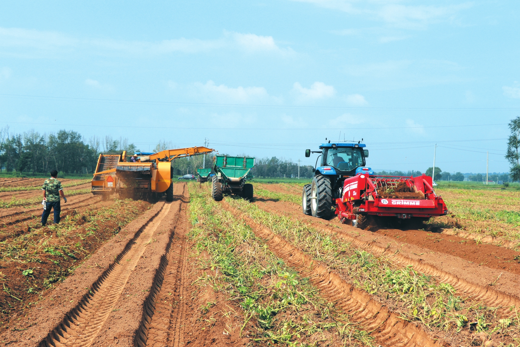 五寨縣現(xiàn)代化加工型馬鈴薯種植基地馬鈴薯機(jī)械化收獲現(xiàn)場。劉篤效攝
