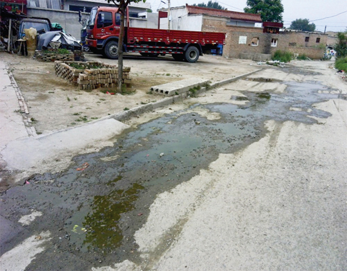 城區(qū)橋東街天宇涂料廠門口,污水橫流10 多天了,南街村有人將此修好,不到一個月,污水又開始流出了,路面變成了綠色,氣味難聞。望相關部門督查治理。(一網(wǎng)友6月21日攝)
