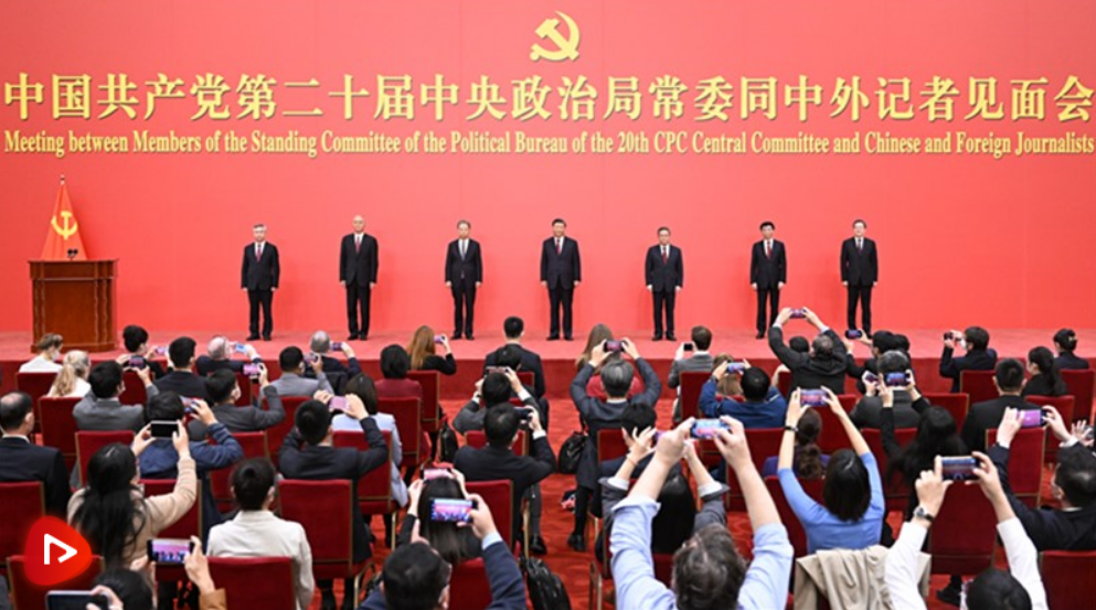 “我們一定牢記黨的性質(zhì)和宗旨,牢記自己的使命和責(zé)任,恪盡職守、勤勉工作,決不辜負(fù)黨和人民重托?!?3日中午,在中國共產(chǎn)黨第二十屆中央委員會第一次全體會議上當(dāng)選為中共中央總書記的習(xí)近平,率領(lǐng)新一屆中央政治局常委在人民大會堂同采訪黨的二十大的中外記者親切見面。習(xí)近平總書記發(fā)表重要講話時(shí)強(qiáng)調(diào):“藍(lán)圖已經(jīng)繪就,號角已經(jīng)吹響。我們要踔厲奮發(fā)、勇毅前行,努力創(chuàng)造更加燦爛的明天?!?/p>