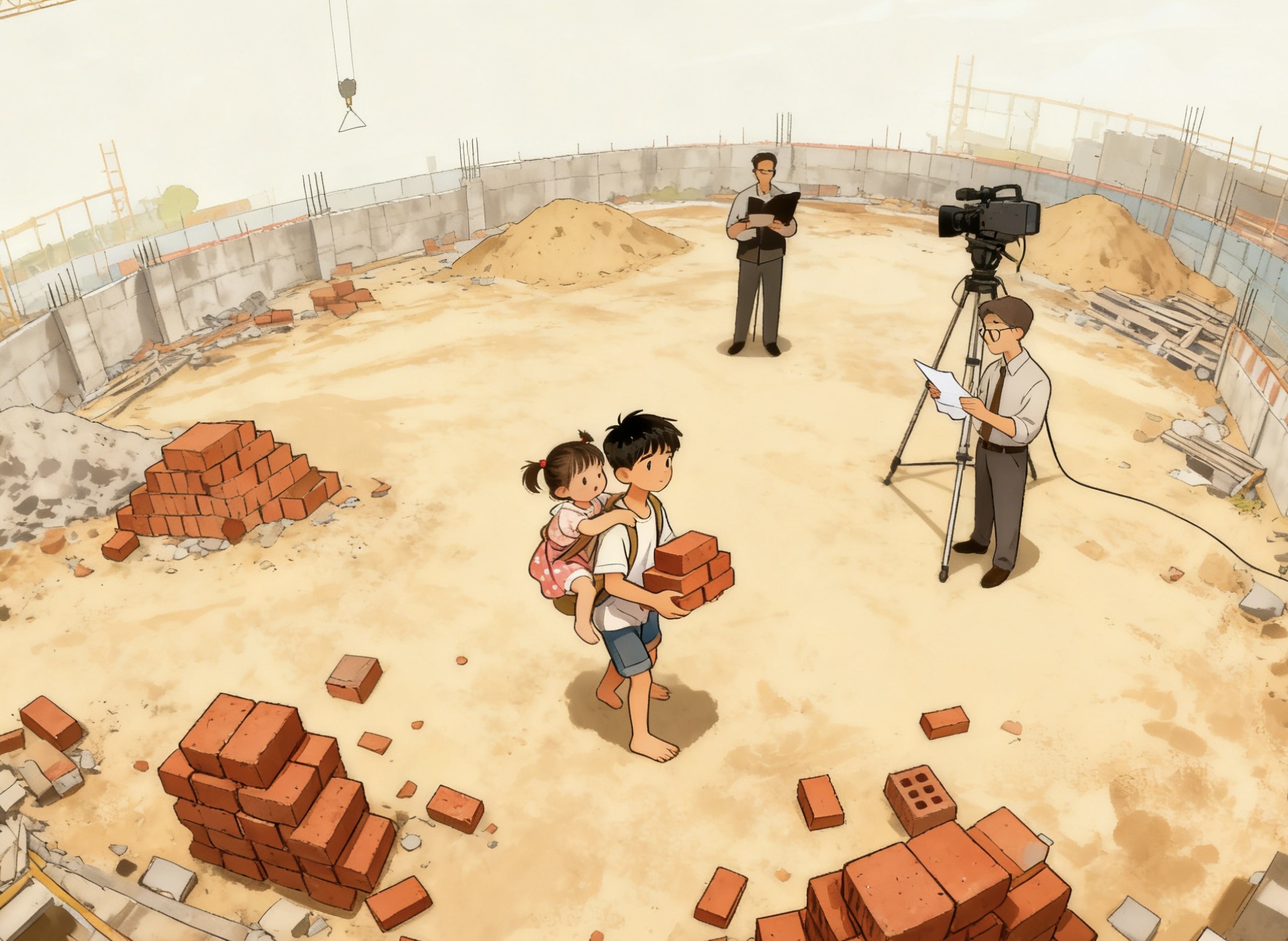 要戳破這場“愛心騙局”,首先得認清擺拍式賣慘的真實嘴臉。這些“苦情戲”的典型癥結(jié),在于缺少“時間、地點、人物”核心三要素,關(guān)鍵是劇情嚴重違背邏輯常識。就像視頻中赤足干活的男孩,稍有常識者都清楚,這完全違反工地基本安全規(guī)范。這些“演員”對面往往架著專業(yè)的拍攝設(shè)備,力求捕捉到每一個“慘”的瞬間,生怕錯過任何一個催淚點。